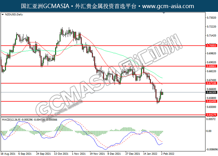 20220203 NZDUSD-午间 by willy | Feb 3, 2022 | 纽元兑美元 | 0 comments NZDUSD,Daily: 纽美震荡上行。MACD空头动能略减,短期可关注多头为主。上方关注0.6710和0.6865压力,下方关注0.6550支撑和0.6425支撑。