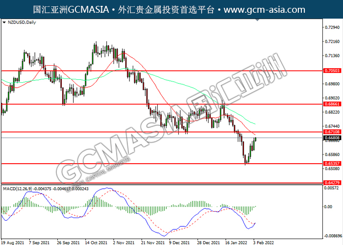 20220204 NZDUSD-午间 by willy | Feb 4, 2022 | 纽元兑美元 | 0 comments NZDUSD,Daily: 纽美震荡上行。MACD多头动能略增,短期可关注多头为主。上方关注0.6710和0.6865压力,下方关注0.6535支撑和0.6430支撑。