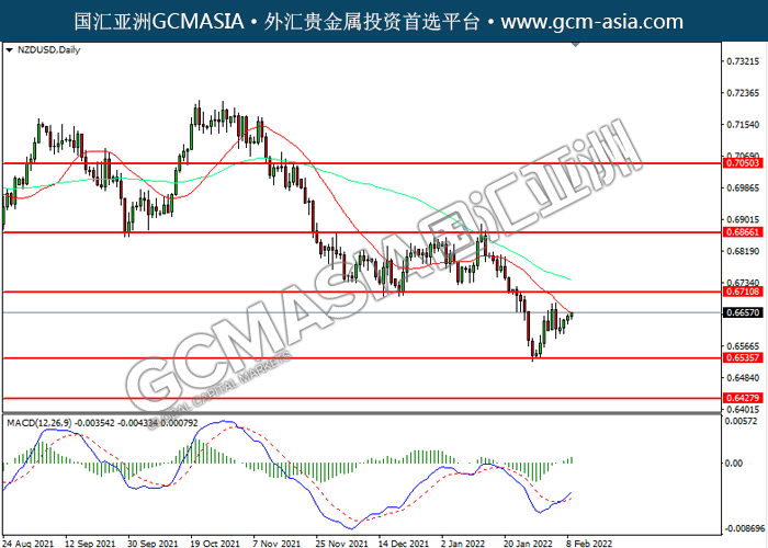 20220209 NZDUSD-午间 by willy | Feb 9, 2022 | 纽元兑美元 | 0 comments NZDUSD,Daily: 纽美震荡上行。MACD多头动能略增,短期可关注多头为主。上方关注0.6710和0.6865压力,下方关注0.6535支撑和0.6430支撑。