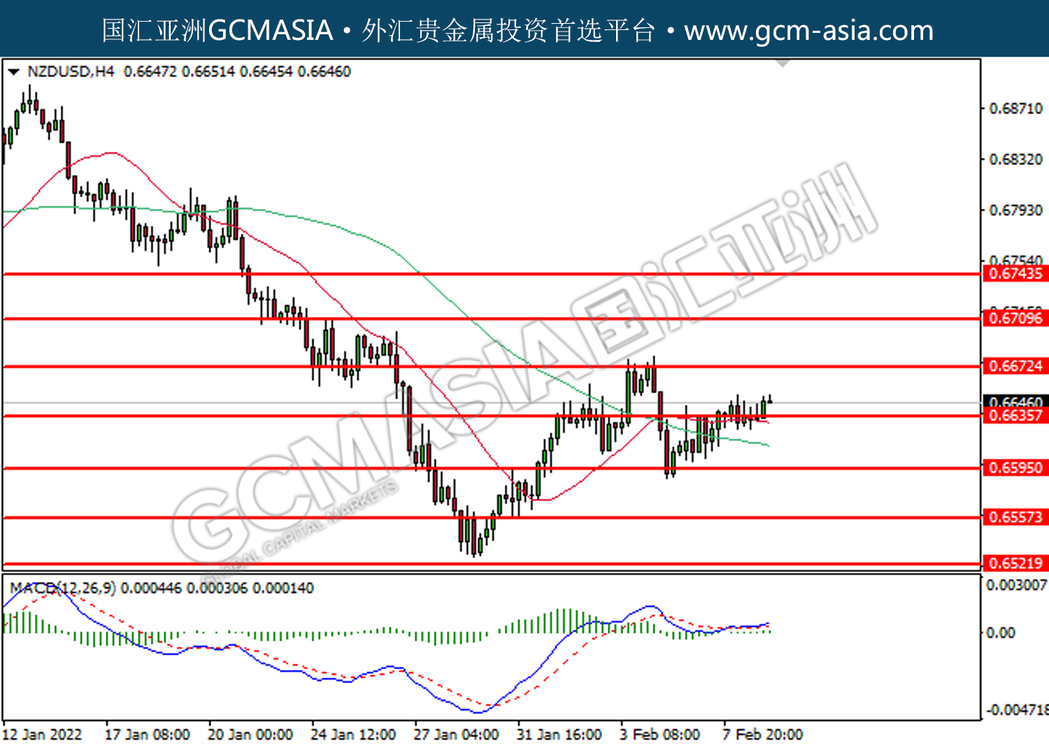 20220209 NZDUSD by willy | Feb 9, 2022 | 纽元兑美元 | 0 comments NZDUSD,H4:纽美震荡上行。MACD已形成金叉,动能偏强,短期关注多头势力。上方关注0.6670压力和0.6710压力,下方关注0.6635支撑和0.6595支撑。