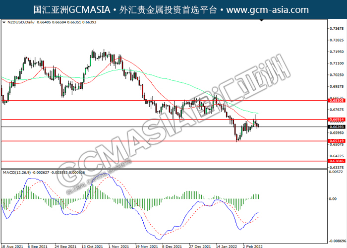 NZDUSD,Daily:纽美高位承压回落。MACD已形成死叉,动能转弱,若下破可继续看空。上方关注0.6690压力和0.6830压力,下方关注0.6530支撑和0.6385支撑。