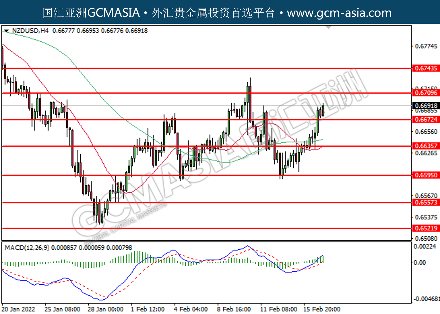 20220217 NZDUSD by willy | Feb 17, 2022 | 纽元兑美元 | 0 comments NZDUSD,H4:纽美低位反弹。MACD已形成金叉,动能偏强,短期关注多头势力。上方关注0.6710压力和0.6745压力,下方关注0.6670支撑和0.6635支撑。
