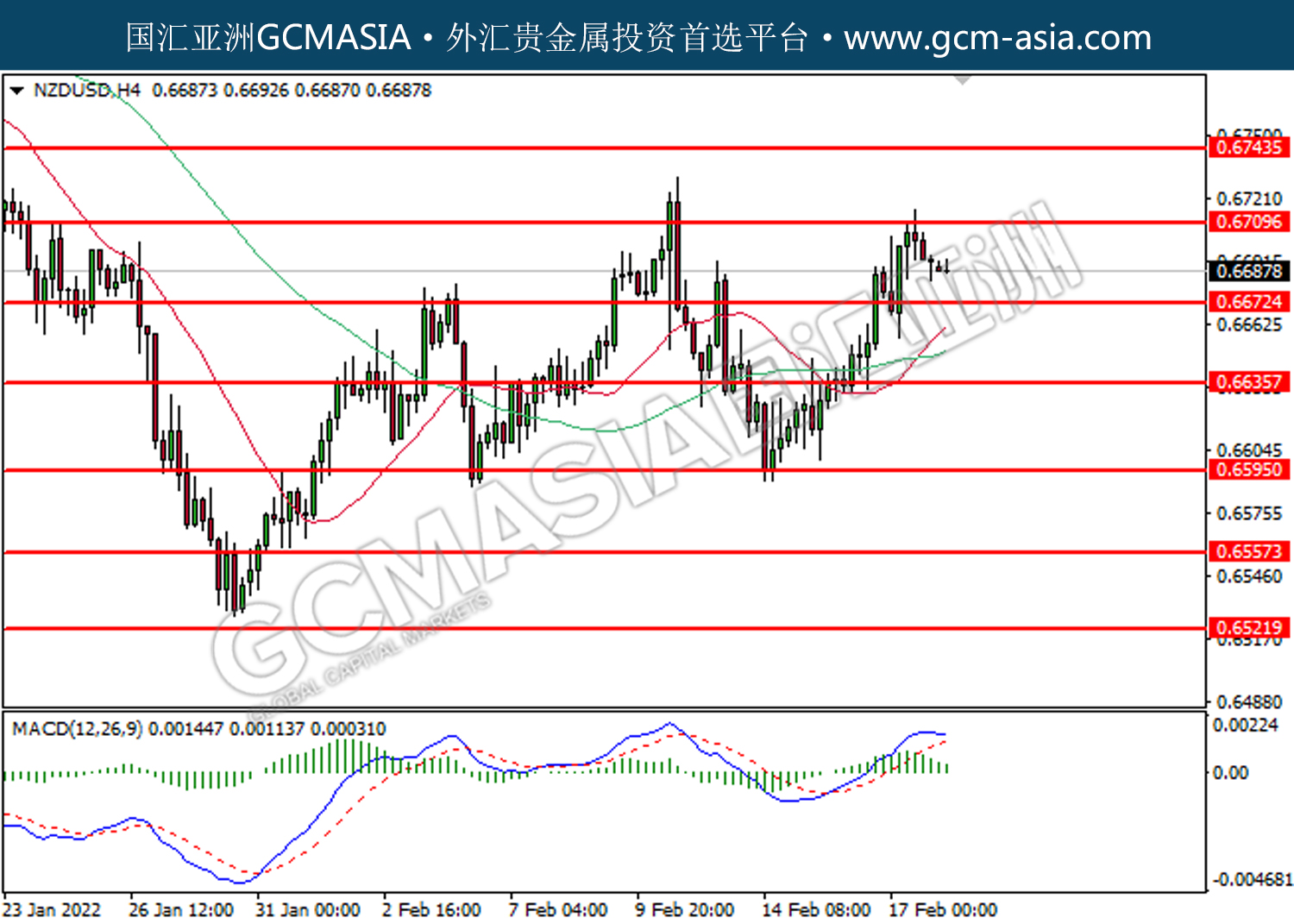 20220218 NZDUSD by willy | Feb 18, 2022 | 纽元兑美元 | 0 comments NZDUSD,H4:纽美受承压回落。MACD多头动能有所略减,短期关注空头势力。上方关注0.6710压力和0.6745压力,下方关注0.6670支撑和0.6635支撑。