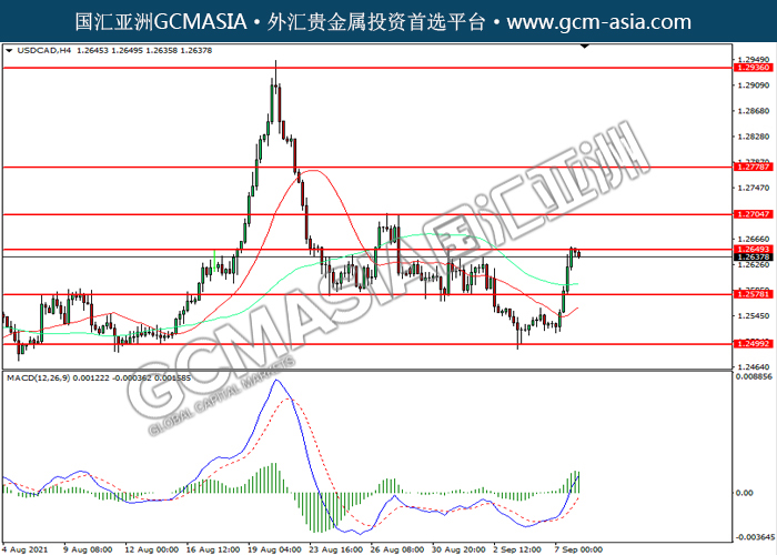 20210908 USDCAD by willy | Sep 8, 2021 | 美元兑加元 | 0 comments USDCAD,H4: 美加震荡上行。MACD多头动能略增,若突破可关注多头为主。上方关注1.2650压力和1.2705压力,下方关注1.2580支撑1.2500支撑