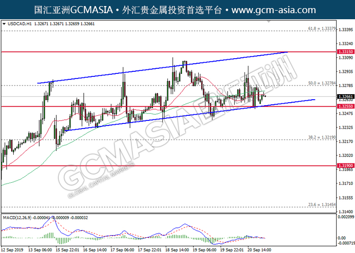 USDCAD,H1USDCAD处于上行通道。然而,MACD开始形成死叉,动能偏弱,短期关注空头势力。上方关注1.3280压力和1.3315压力,下方关注1.3255支撑和1.3220支撑。