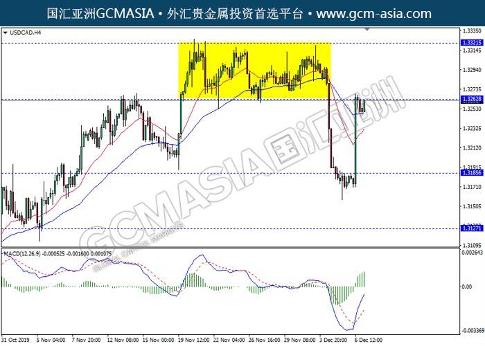 USDCAD, H4: 美加多头排列,目前测试前期压力。MACD动能持续略增,若突破继续看多为主。上方关注1.3260压力和1.3320压力,下方关注1.3185支撑和1.3125支撑。