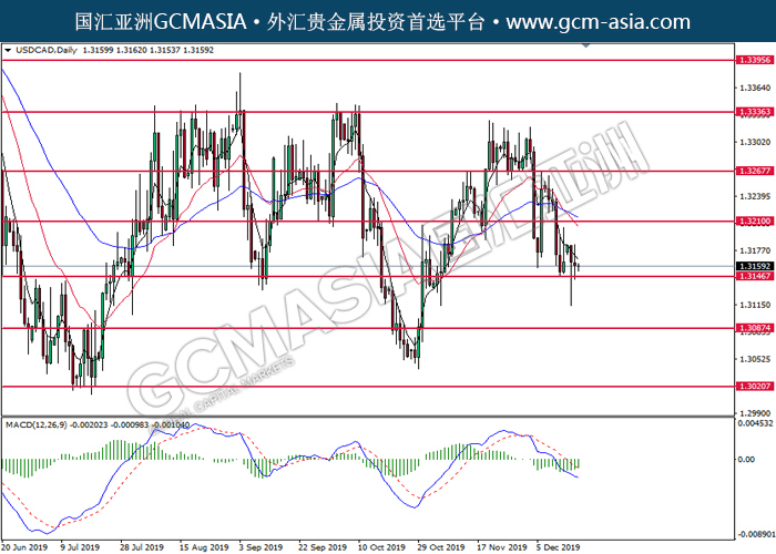 USDCAD, Daily: 美加震荡下行,目前测试靠近前期支撑。然而,MACD空头动能有所略减,短期关注多头反弹走势为主。上方关注1.3210压力和1.3265压力,下方关注1.3145支撑和1.3085支撑。