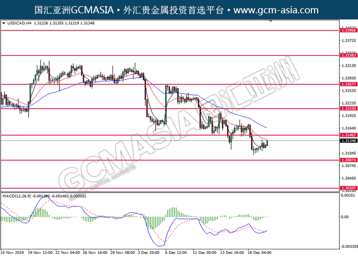 20191220 USDCAD-午间 by skylow | Dec 20, 2019 | 美元兑加元 | 0 comments GCMAsia - USDCAD USDCAD 2019-12-20 USDCAD, H4: 美加低位反弹。MACD形成金叉,动能略增,短期可关注多头走势为主。上方关注1.3145压力和1.3210压力,下方关注1.3085支撑和1.3020支撑。