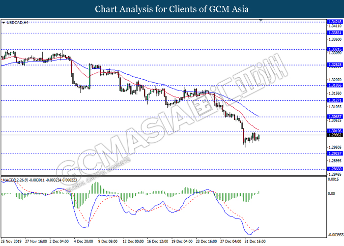 USDCAD, H4: 美加震荡盘整,目前测试靠近前期支撑。然而,MACD形成金叉,动能略增,若突破关注多头为主。上方关注1.3010压力和1.3065压力,下方关注1.2925支撑和1.2865支撑。