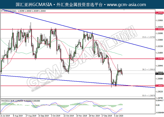 20200117 USDCAD by willy | Jan 17, 2020 | 美元兑加元 | 0 comments GCMAsia - USDCAD USDCAD 2020-01-17 USDCAD,Daily:美加受承压回落。MACD多头动能有所略减,短期关注空头势力。上方关注1.3060压力和1.3140压力,下方关注1.2960支撑和1.2890支撑。