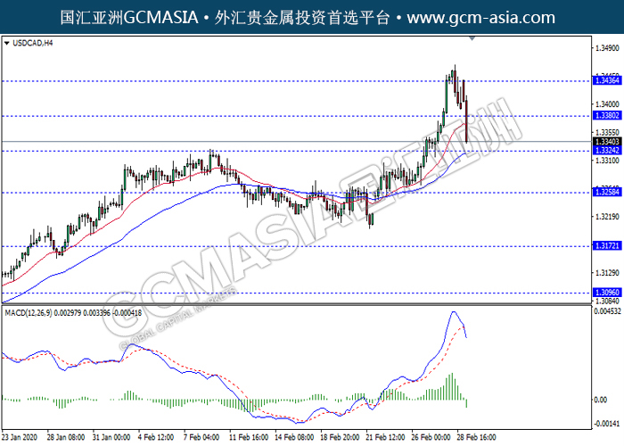 USDCAD, H4: 美加空头排列,目前测试靠近前期支撑。MACD形成死叉,动能略减,若突破继续看空为主。上方关注1.3380压力和1.3435压力,下方关注1.3325支撑和1.3260支撑。