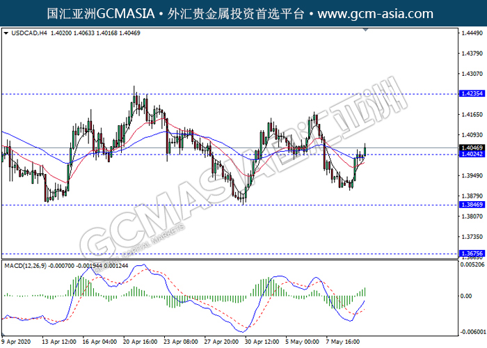 USDCAD,H4:美加突破前期压力,多头排列。MACD形成金叉,动能略增,中期继续看多为主。上方关注1.4235压力和1.4465压力,下方关注1.4025支撑和1.3845支撑。