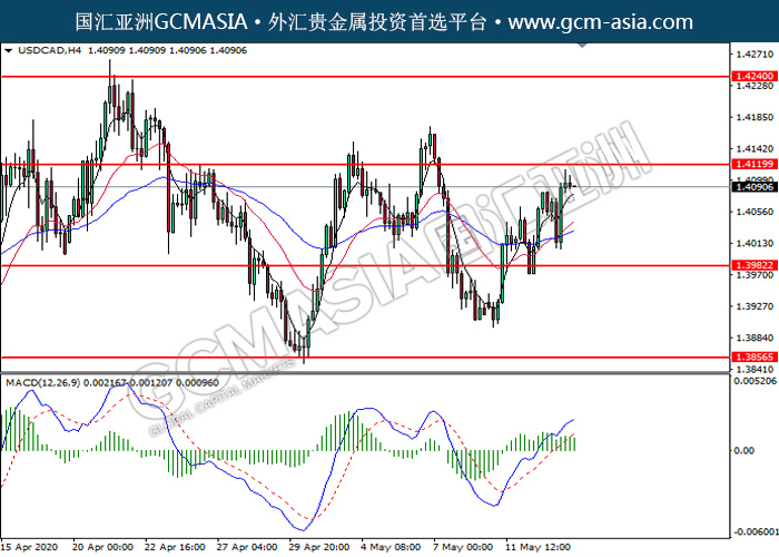 20200514 USDCAD by willy | May 14, 2020 | 美元兑加元 | 0 comments GCMAsia - USDCAD USDCAD 2020-05-14 USDCAD,H4:美加高位承压后回落。MACD显示空头信号,动能略减,短期可关注空头为主。上方关注1.4120压力和1.4240压力,下方关注1.3980支撑和1.3855支撑。