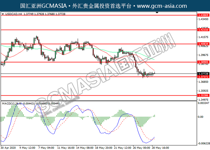 USDCAD,H4:美加震荡盘整,目前测试前期支撑。MACD多头动能略增,短期可关注多头为主。上方关注1.3890压力和1.4085压力,下方关注1.3735支撑和1.3540支撑。