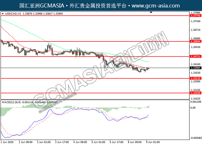 USDCAD,H1:美加下破前期支撑,震荡下行。然而,MACD多头动能略增,短期可关注技术性回调为主。上方关注1.3470压力和1.3585压力,下方关注1.3310支撑和1.3205支撑。