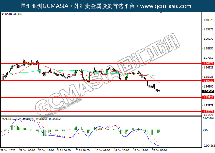 USDCAD,H4:美加突破前期支撑,震荡下行。然而,MACD空头动能略减,短期关注技术性多头反弹为主。上方关注1.3500压力和1.3665压力,下方关注1.3345支撑1.3205支撑。