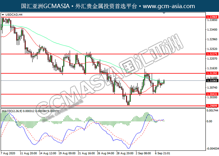 20200908 USDCAD-午间 by keyk | Sep 8, 2020 | 美元兑加元 | 0 comments GCMAsia - USDCAD USDCAD 2020-09-08 USDCAD,H4:美加低位反弹。MACD多头动能有所略增,短期可关注多头为主。上方关注1.3140压力和1.3225压力,下方关注1.3045支撑1.2990支撑。