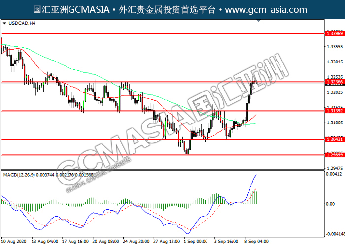 USDCAD,H4:美加多头排列,目前测试前期压力。然而,MACD多头动能有所略减,短期可关注技术性回调。上方关注1.3235压力和1.3395压力,下方关注1.3140支撑1.3045支撑。