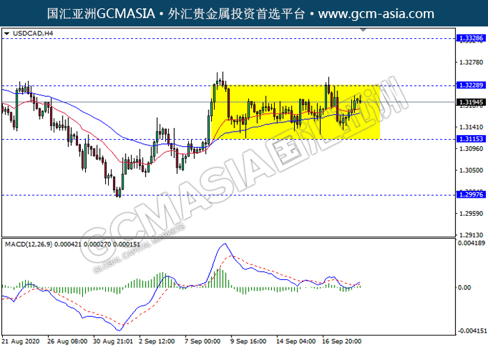 USDCAD,H4:美加仍区间震荡交易。然而,MACD形成金叉,动能略增,短期关注多头方向为主。上方关注1.3230压力和1.3330压力,下方关注1.3115支撑1.2995支撑。