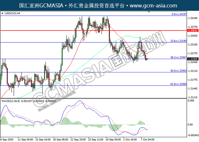 USDCAD,H4:美加高位回落,目前测试前期支撑。MACD已形成死叉,动能转弱,若下破可关注空头为主。上方关注1.3320压力和1.3365压力,下方关注1.3255支撑1.3205支撑。
