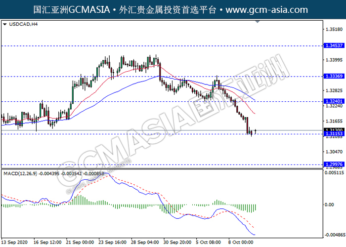 USDCAD,H4:美加空头排列,目前测试前期支撑。然而,MACD空头动能开始略减,短期关注技术性多头反弹趋势为主。上方关注1.3240压力和1.3335压力,下方关注1.3115支撑1.2995支撑。