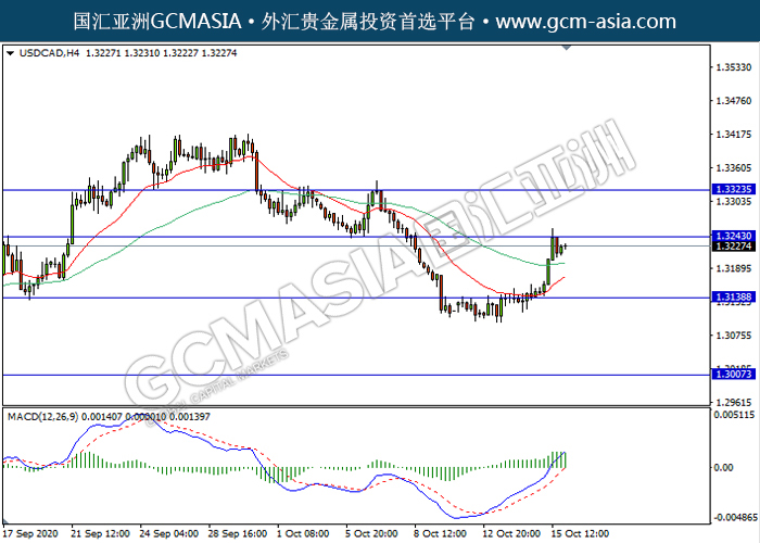 USDCAD,H4:美加多头排列,目前测试前期压力。MACD动能持续略增,若突破继续看多头方向为主。上方关注1.3245压力和1.3325压力,下方关注1.3140支撑1.3005支撑。