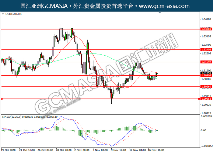 USDCAD,H4:美加低位反弹。MACD空头动能略减,短期可持续关注多头为主。上方关注1.3170压力和1.3240压力,下方关注1.3090支撑1.3025支撑。