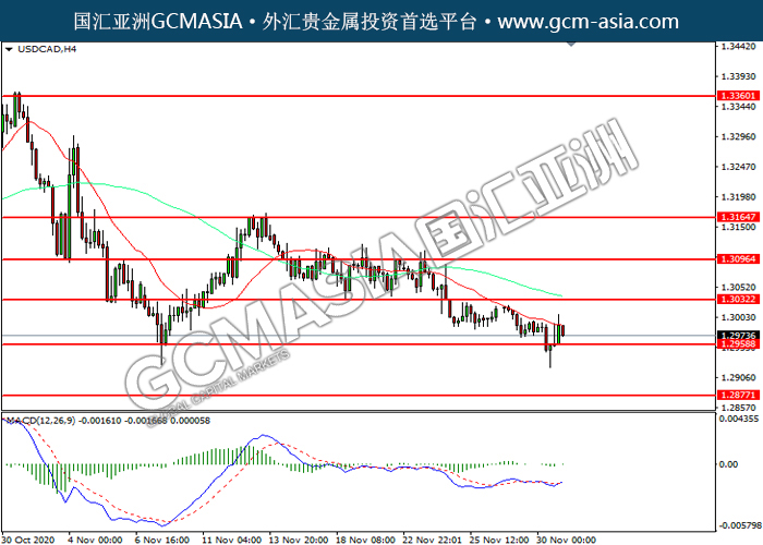 20201201 USDCAD-午间 by keyk | Dec 1, 2020 | 美元兑加元 | 0 comments GCMAsia - USDCAD USDCAD 2020-12-01 USDCAD,H4:美加低位反弹。MACD已形成金叉,动能转强,短期可关注多头为主。上方关注1.3030压力和1.3095压力,下方关注1.2960支撑1.2875支撑。