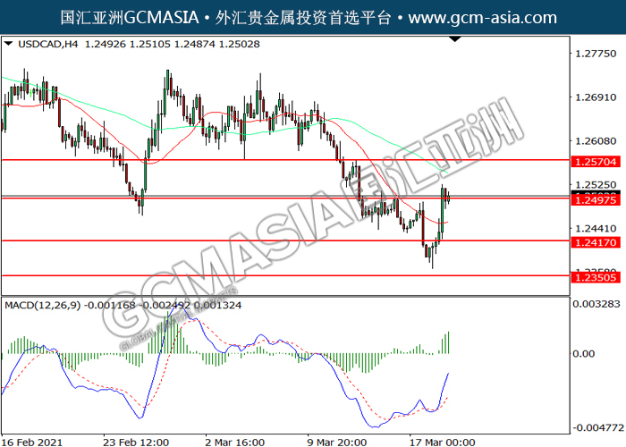 USDCAD,H4:美加震荡上行,目前测试前期压力。MACD多头动能略增, 若突破关注多头方向为主。上方关注1.2495压力和1.2570压力,下方关注1.2415支撑1.2350支撑。