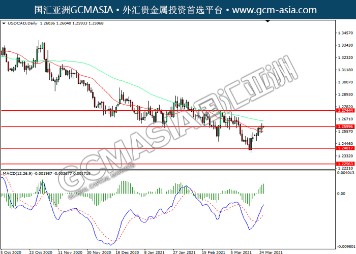 USDCAD, Daily:美加震荡上行,目前测试前期压力。MACD多头动能开始略增,若突破关注多头趋势为主。上方关注1.2600压力和1.2745压力,下方关注1.2400支撑1.2255支撑。