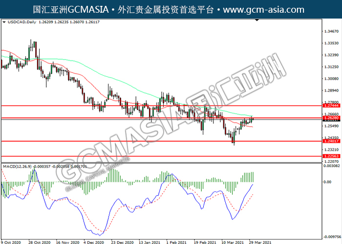 USDCAD, Daily:美加震荡上行,目前测试前期压力。MACD多头动能开始略增,若突破可关注多头为主。上方关注1.2630压力和1.2745压力,下方关注1.2400支撑1.2255支撑。