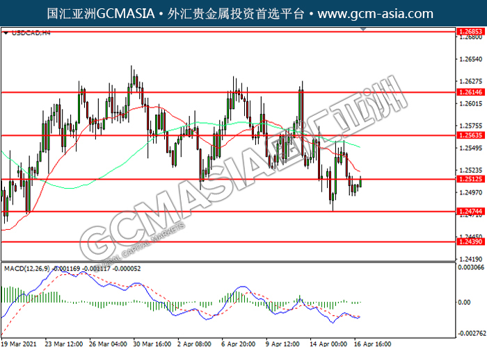USDCAD,H4: 美加震荡上行,目前测试前期压力。MACD空头动能略减,若突破可关注多头趋势为主。上方关注1.2515压力和1.2565压力,下方关注1.2475支撑1.2440支撑。