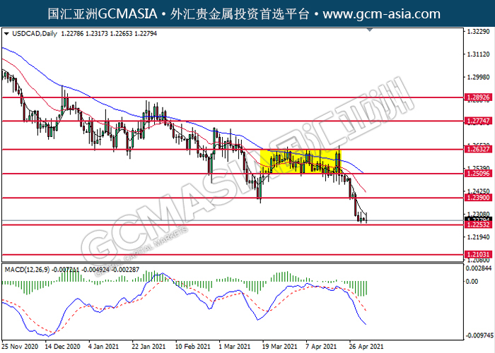 USDCAD,Daily: 美加突破后持续下行。MACD显示空头信号,动能偏强,若突破可持续关注空头为主。上方关注1.2390压力和1.2510压力,下方关注1.2255支撑1.2105支撑。
