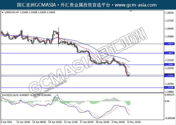 USDCAD,H4:美加空头排列,目前测试前期支撑。然而,MACD空头动能有所略减,短期关注技术性多头反弹趋势为主。上方关注1.2270压力和1.2385压力,下方关注1.2150支撑1.2030支撑。