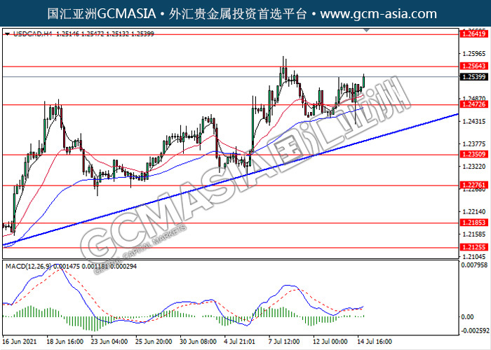 USDCAD,H4: 美加震荡上行,目前测试靠近前期压力。MACD动能略增,若突破可继续看多为主。上方关注1.2565和1.2640压力,下方关注1.2470支撑1.2350支撑。