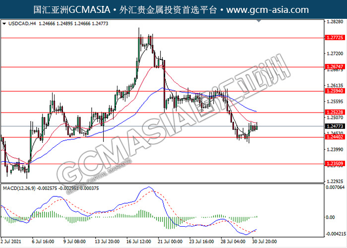 20210802 USDCAD-午间 by keyk | Aug 2, 2021 | 美元兑加元 | 0 comments USDCAD,H4: 美加触底反弹上行。MACD形成金叉,动能略增,短期继续看多反弹为主。上方关注1.2520和1.2595压力,下方关注1.2440支撑1.2350支撑。