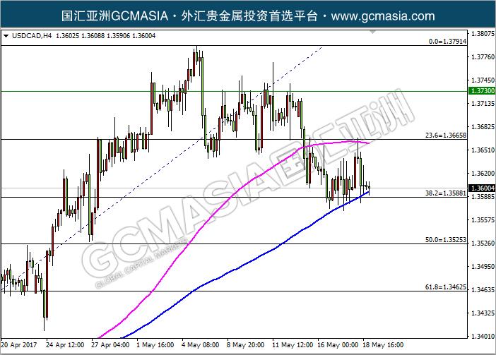 USDCAD H4:美加高位回调,震荡偏弱;持续测试38.2水平线,存在较强买盘,震荡加剧,短期继续关注均线区间震荡,等待突破;上方关注1.3670阻力和1.3730阻力;下方关注1.3600支撑和1.3530支撑。