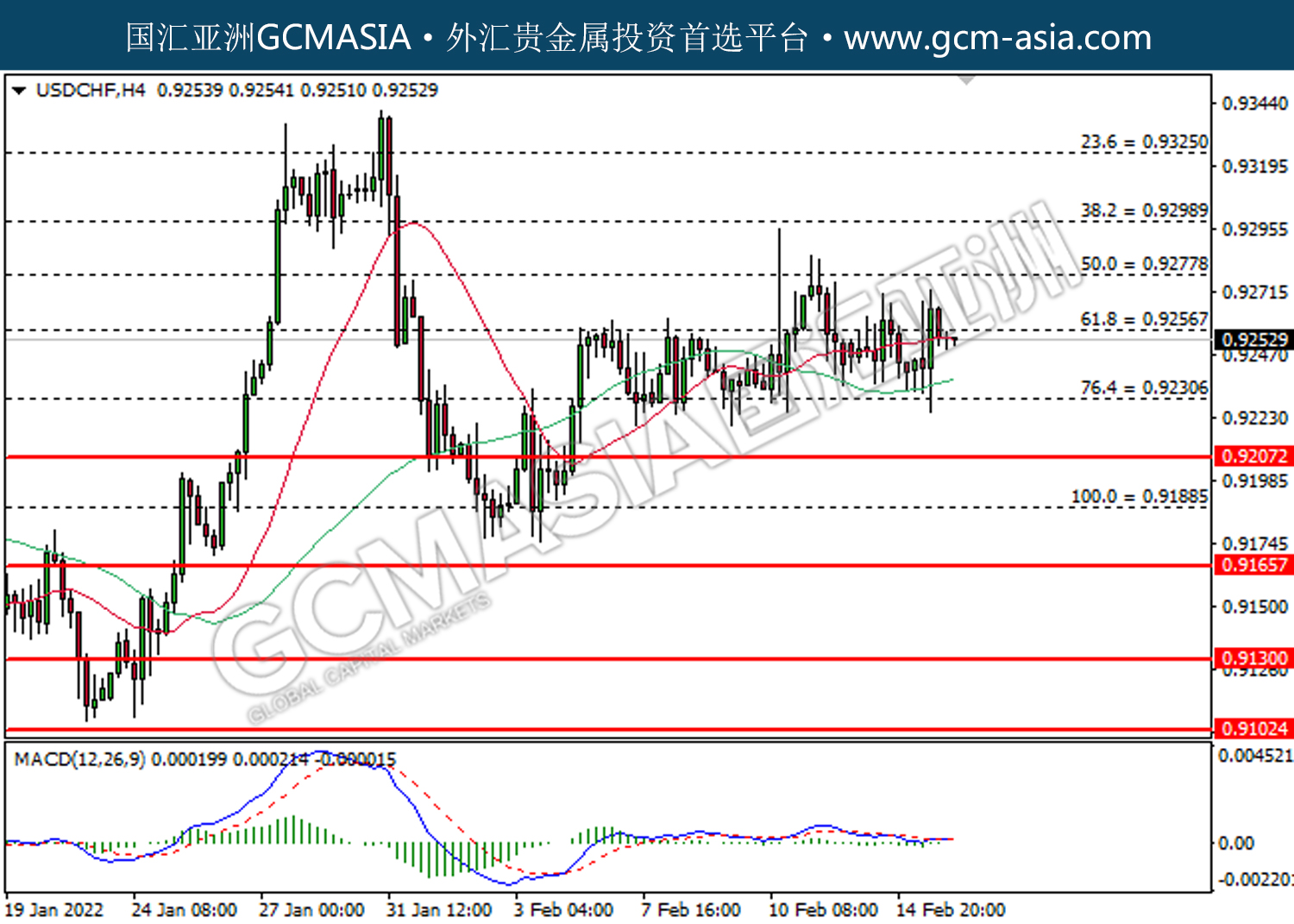 20220216 USDCHF by willy | Feb 16, 2022 | 美元兑瑞士法郎 | 0 comments USDCHF,H4:美瑞受承压回落。MACD已形成死叉,动能转弱,短期关注空头势力。上方关注0.9255压力和0.9280压力,下方关注0.9230支撑和0.9210支撑。