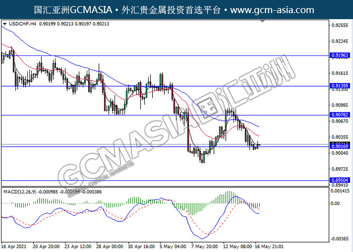 USDCHF,H4:美瑞空头排列,目前测试前期支撑。然而,MACD空头动能略减,短期关注多头反弹为主。上方关注0.9080压力和0.9135压力,下方关注0.9020支撑和0.8950支撑。