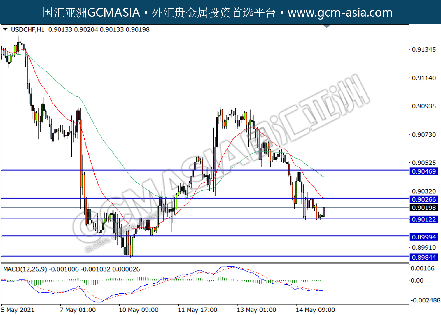 20210517-USDCHF by willy | May 17, 2021 | 美元兑瑞士法郎 | 0 comments USDCHF,H1:美瑞低位反弹。MACD开始形成金叉,动能转强,短期可关注技术性回调为主。上方关注0.9025压力和0.9045压力,下方关注0.9010支撑和0.8985支撑。