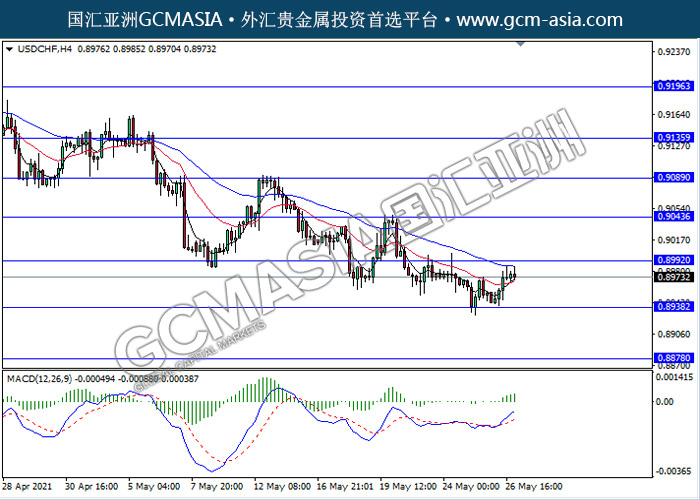 USDCHF,H4:美瑞近期低位反弹,目前测试靠近前期压力。MACD动能略增,若突破继续看多为主。上方关注0.8990压力和0.9045压力,下方关注0.8940支撑和0.8880支撑。