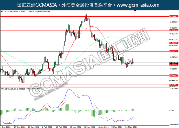 USDCHF,Daily:美瑞震荡下行,目前测试前期支撑。然而,MACD多头动能略增,短期可关注技术性回调为主。上方关注0.9095压力和0.9175压力,下方关注0.8955支撑和0.8850支撑。