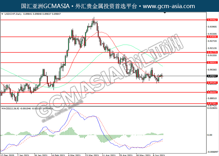 USDCHF,Daily:美瑞震荡下行,目前测试前期支撑。然而,MACD多头动能略增,短期可关注技术性回调为主。上方关注0.9095压力和0.9175压力,下方关注0.8930支撑和0.8850支撑。