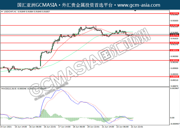 USDCHF,H4:美瑞震荡下行,目前测试前期支撑。然而,MACD空头动能略减,短期可关注技术性回调为主。上方关注0.9235压力和0.9305压力,下方关注0.9180支撑和0.9135支撑。