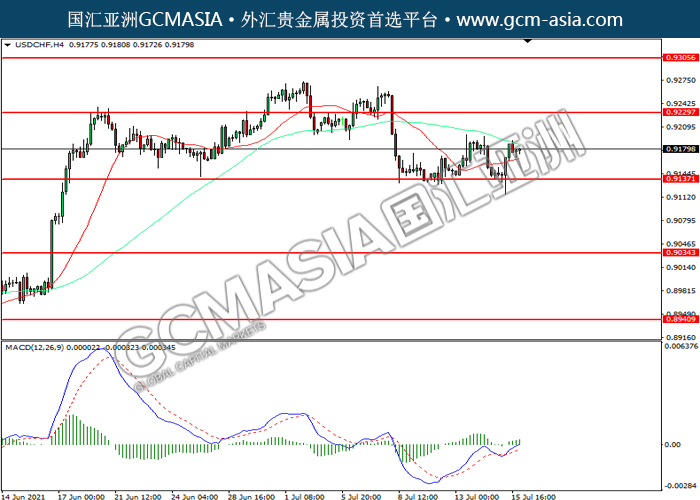 USDCHF,H4: 美瑞震荡上行。MACD多头动能略增,短期可关注多头为主。上方关注0.9230压力和0.9305压力,下方关注0.9135支撑和0.9035支撑。