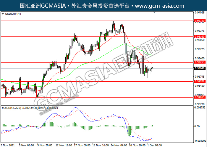 USDCHF,H4: 美瑞震荡上行。MACD多头动能略增,短期可关注多头为主。上方关注0.9225压力和0.9315压力,下方关注0.9155支撑和0.9100支撑。
