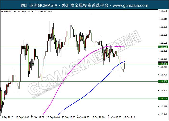 USDJPY H4:美日高位回调,震荡偏强;目前回测均线阻力,多头转强,若上破整点阻力,上行空间打开,短期关注多头;上方关注112阻力和112.5阻力;下方关注111.5支撑和111支撑。