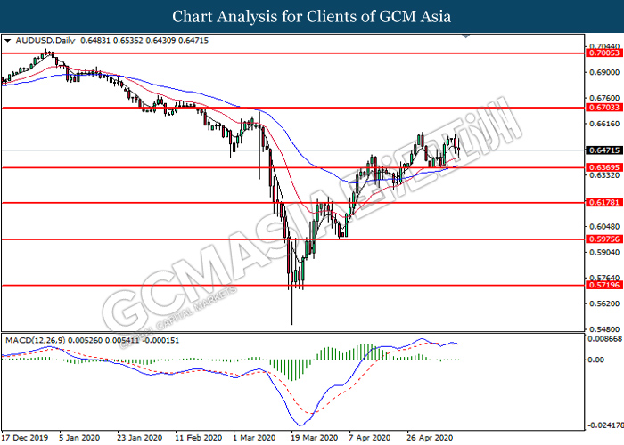 AUDUSD, Daily: AUDUSD was traded lower following prior retracement from the higher level. MACD which illustrates bearish momentum signal suggest the pair to extend its losses toward the support level at 0.6370.