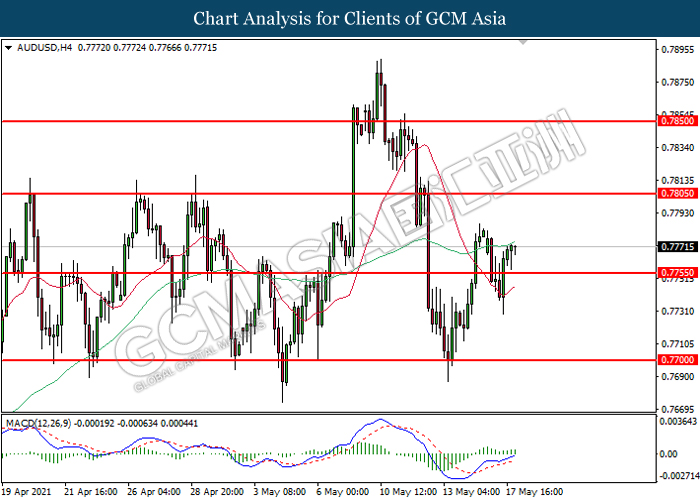 AUDUSD, H4: AUDUSD was traded higher following prior rebound from lower level. MACD which illustrated upward momentum suggest the pair to be traded higher in short-term.
