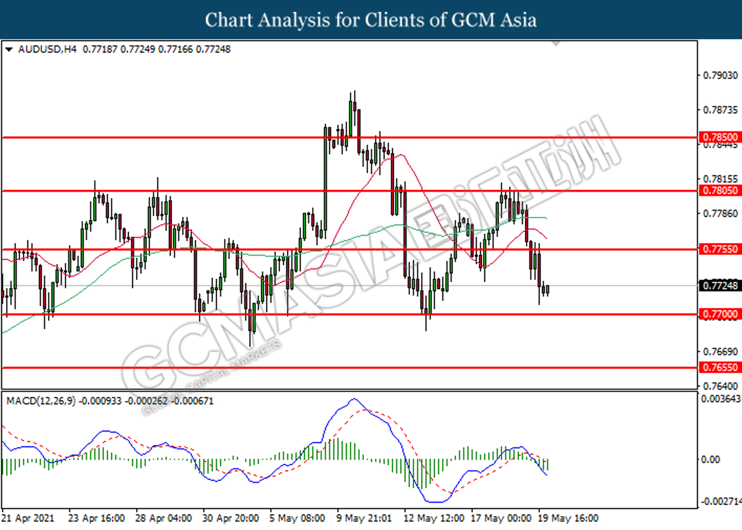 Support level: 0.7700, 0.7655